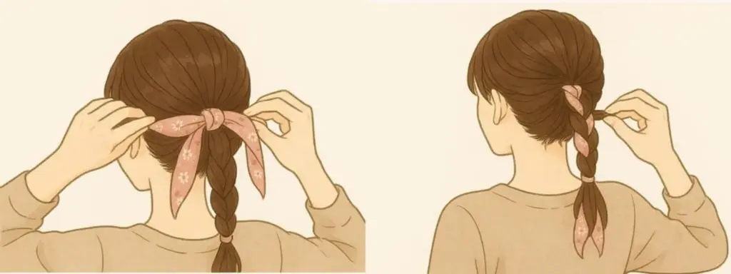4. スカーフ編み込みポニー