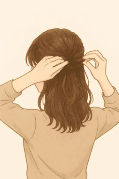 - 耳上の髪を少しゆるめに結ぶ