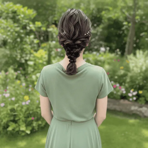 - 残りの髪をおろし三つ編みの根元を隠すようにほぐす