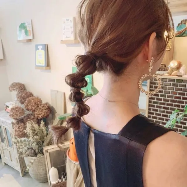 ポニーテールを結べるミディアムであれば、ポコポコかわいい玉ねぎヘアが可能です。