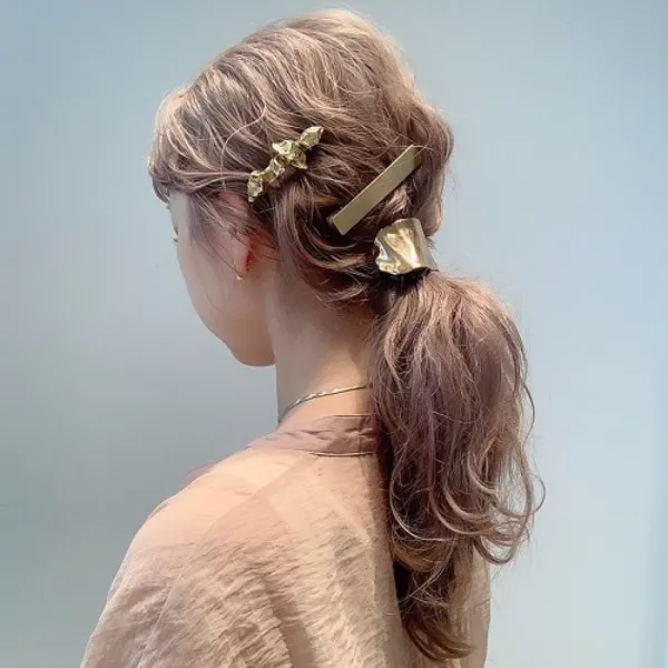 ゴールドはヘアセットに温かみのある華やかさをプラスしてくれ、シルバーは清楚で上品な印象に仕上がります。複数のバレッタを使う場合は、ゴールドかシルバーの一方に統一すると、まとまりが良くなります。